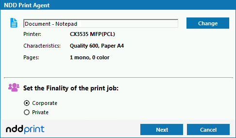 It allows you to modify, at the printing time, the document title. After making the change, the new title will be presented in NDD Print Portal 360 reports.