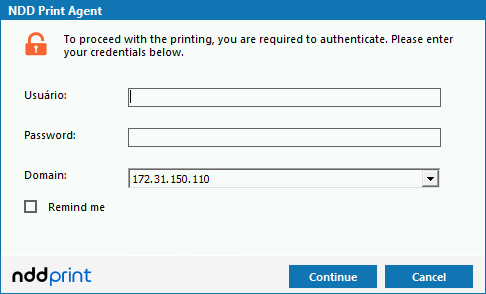 In this case, when requesting a print, a login screen will be displayed, which can be configured in two ways: