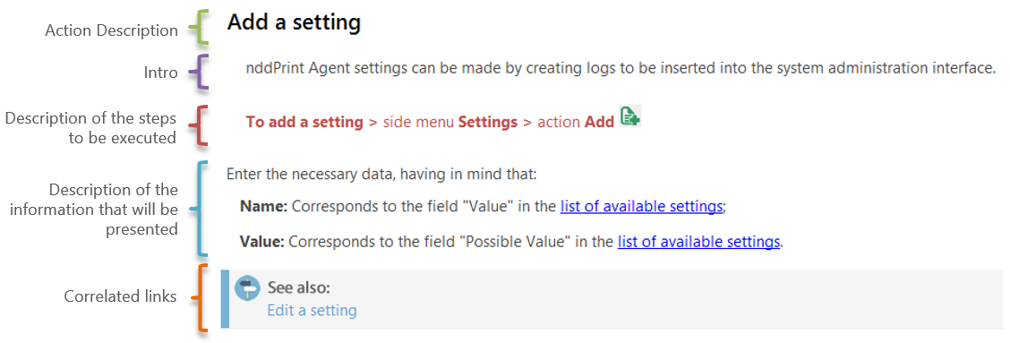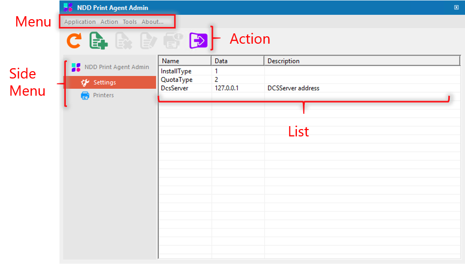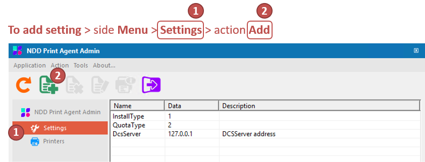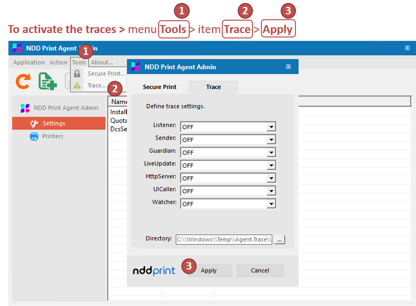 Steps are described considering the name of the objects that are displayed in the NDD Print Agent:
