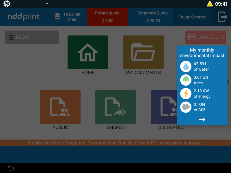 To insert quotas, enter the Pre-Paid Card code provided to you by the administrator. After validating the code, the new credit will be added to your current balance.