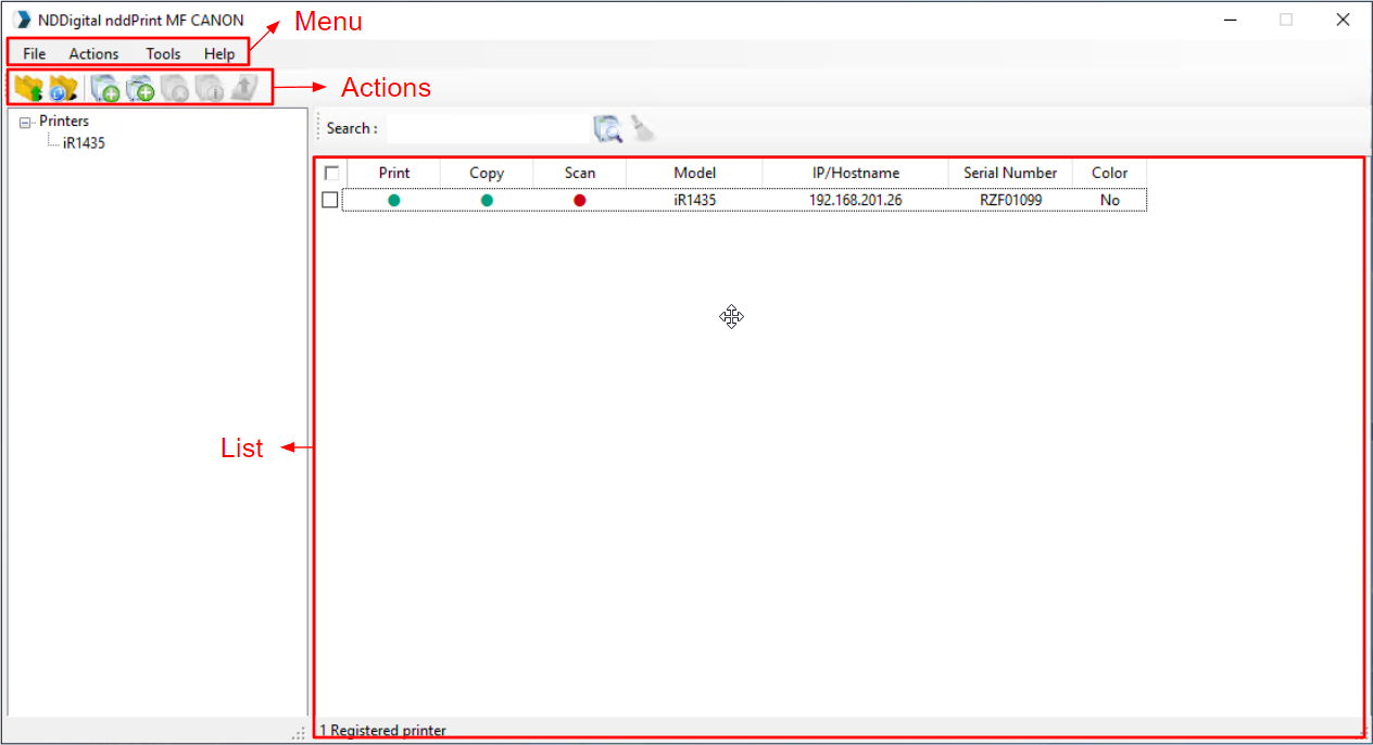 Administration of NDD Print MF Canon