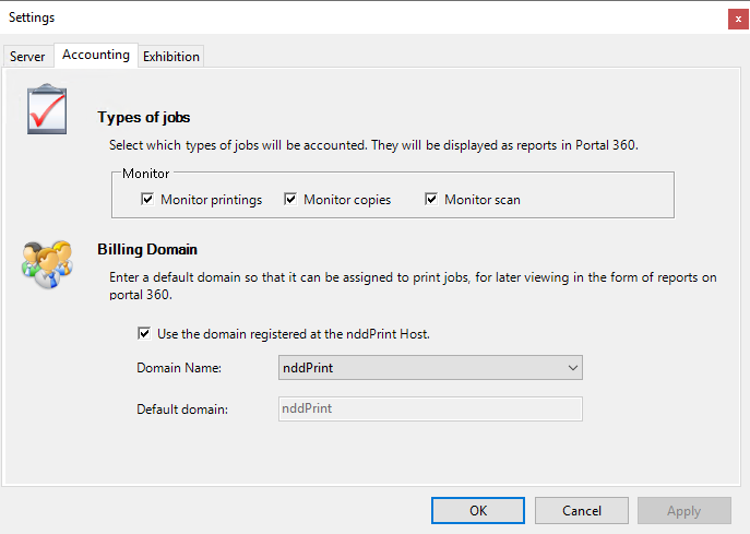 You can enter a domain manually in the Default Domain field or use the same domains registered in the NDD Print Host. For this, click Use a domain registered in NDD Print Host, and choose the domain from the list.