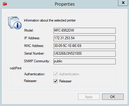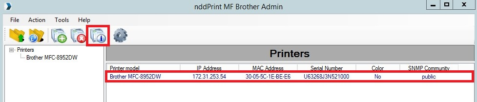 select the desired device from the nddPrint MF Brother interface and click "Properties".