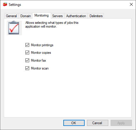 By default, when the nddPrint MF Sharp is installed, all types of jobs are set to be accounted: Print, Copy, Fax, and Scan.