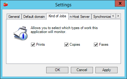 In the administration interface, by accessing Tools > Settings, in the tab Type of Jobs it's possible to define which types of jobs will be accounted by the product. Select the desired options and click OK.
