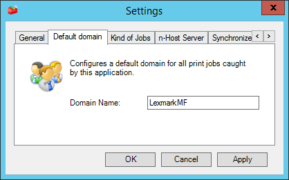 The printings accounted by the n-MF Lexmark doesn't have a domain attributed. This way, it's necessary to configure a default domain to account the print jobs. To perform this setting, in the administration interface, access Tools > Settings and in the tab Default Domain fill in the field Domain Name.