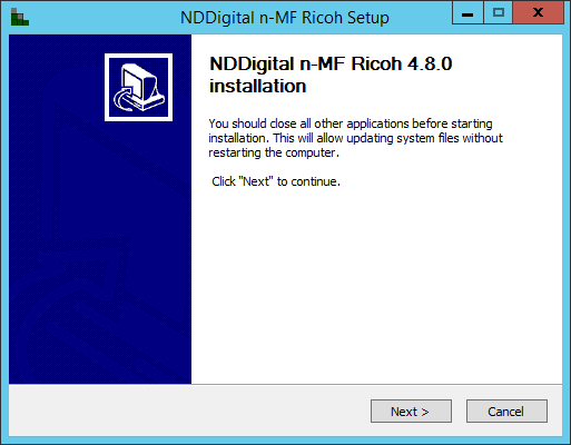 The installation Wizard of the n-MF Ricoh will open. Follow the installation steps.