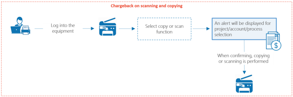 Allows users to assign print jobs to projects, processes or accounts. When enabled, when performing a print, copy, fax or scan, the user must select the account to which they want to assign the job.