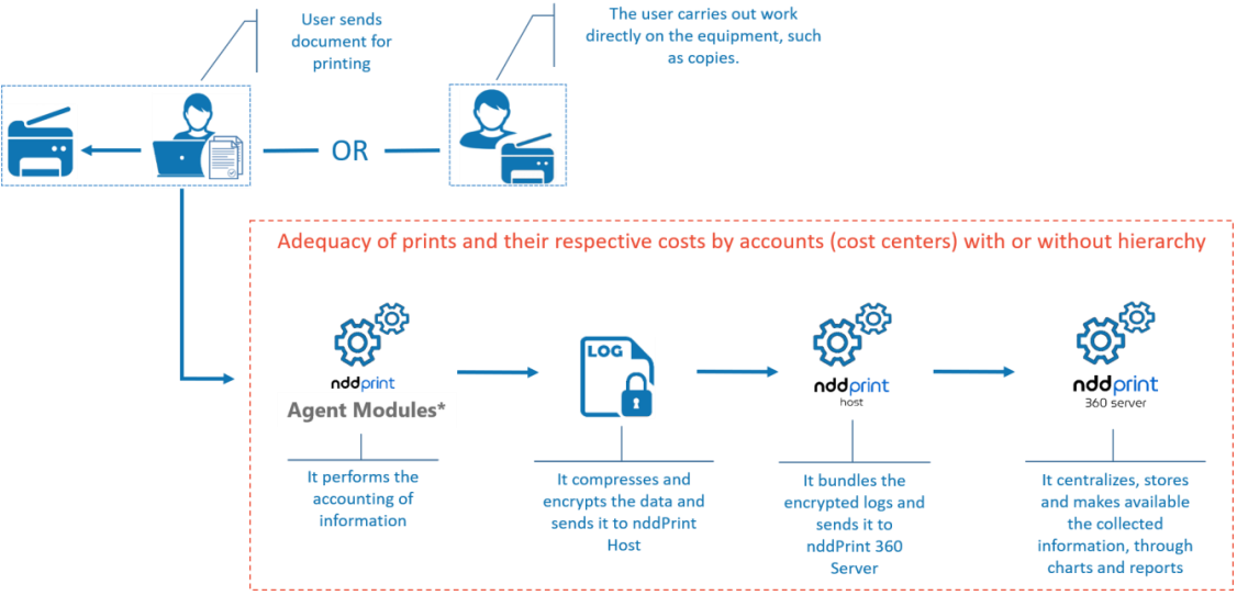 Accounts are organizational units or methods used in order to segregate and/or classify the printing environment, and in NDD Print 360, they can be, for example: Cost centers, projects, areas, customers or departments.