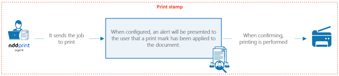 In this scenario, users send the documents for printing, and when it has been configured, an alert will be displayed stating that a print stamp has been applied, otherwise the document will be printed without showing any alerts.