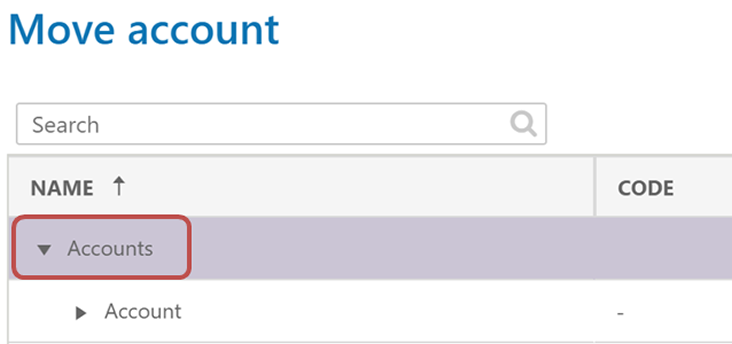To move an account to a parent account > view Accounts > on the list select the account that will be moved > action Move > on the list select the account to where it will be moved > Confirm