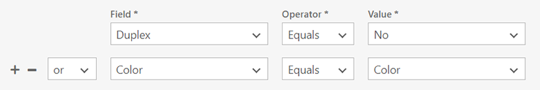 ![]() If, the separator is "AND": The policy will only lock the job when the two attributes are met. | ![]() If the separator is "OR": The policy will be applied when either of the two attributes is met. |