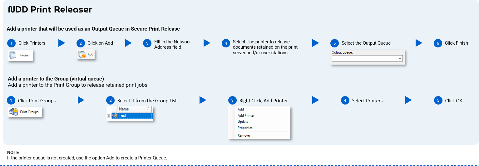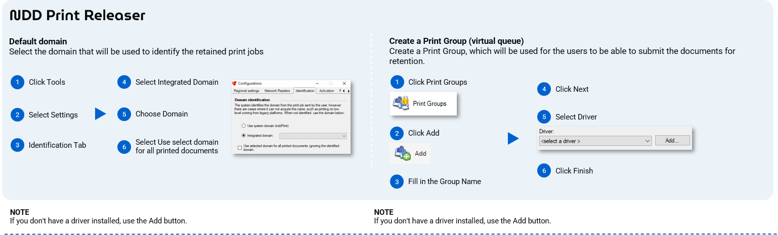 We created for you a Quick Guide for installing and configuring the NDD Print modules, in order to use the Accounting, Secure Release and Policies features.