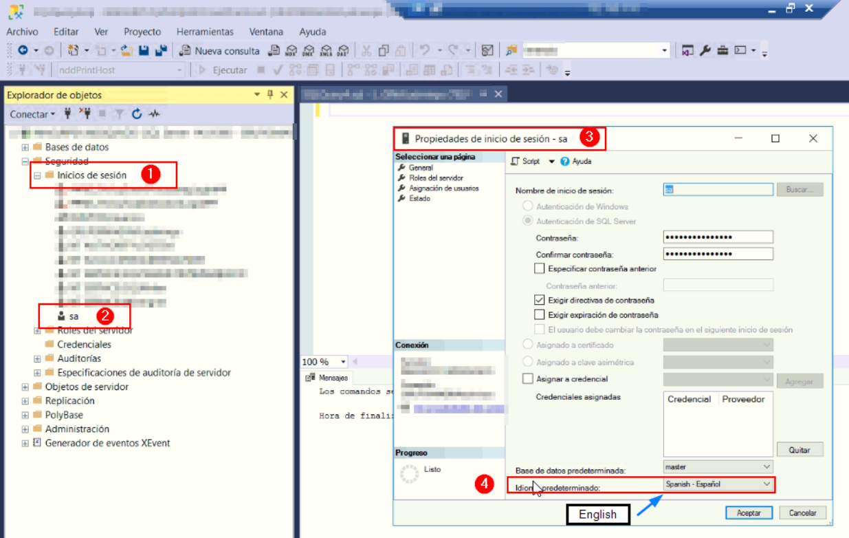 When using SQL Server for the NDD Print Host databases, it is necessary for the user connecting to the database to have their language set to English.