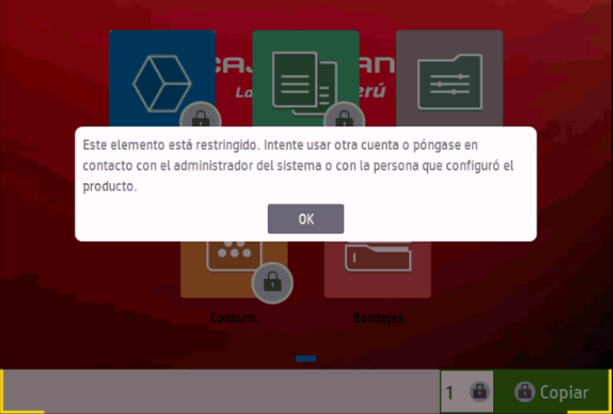 When authenticating, the NDD Print Client icon remains locked and the device displays the following message "This element is locked. Try using another account or contact your system administrator or the person who configured the product".