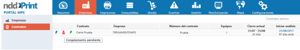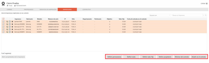 Además, en la pestaña “impresoras”, también se puede realizar algunas acciones en impresoras de contrato, que son: