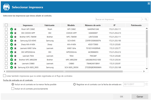 Impresoras fuera del “Flujo de Contratos”: Es posible listar también las impresoras que no quedan registradas en el flujo de contratos, el registro de las impresoras en el flujo de contratos puede ser automático o manual;