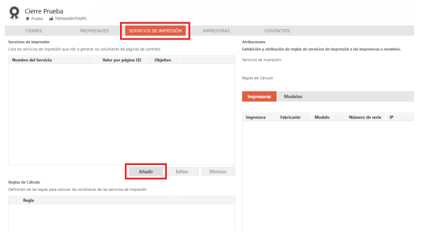 En la pestaña “Servicios de impresión” es posible crearlos: