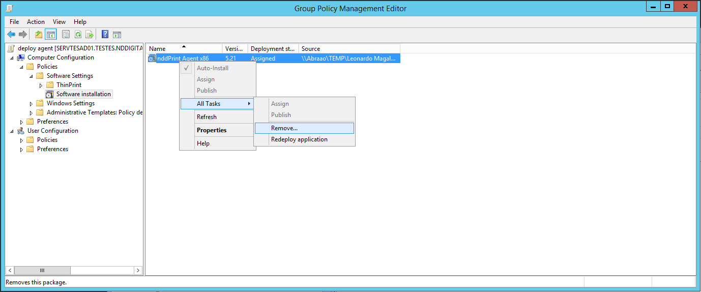 Los archivos deberán ser copiados para un directorio compartido de la red, con permisos de solamente lectura para todos los ordenadores, de donde el paquete será distribuido.