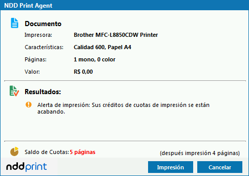La restricción de impresión pasa siempre que un documento se encuadra en una política restrictiva. En este caso, será presentado un mensaje: Restricción de impresión.