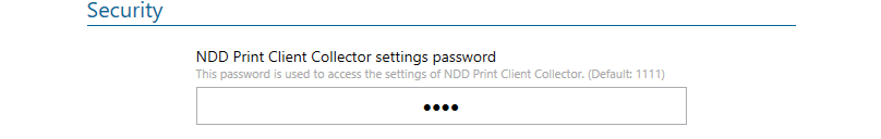 NDD Print Settings Password: contraseña para acceder a la configuración del módulo NDD Print Client Collector a través de la interfaz del equipo (predeterminada 1111).