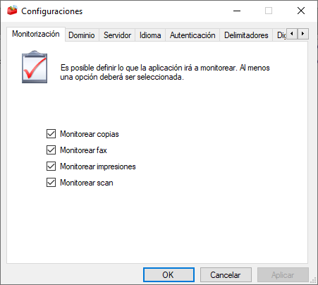 En la pestaña Monitorización - Seleccione los tipos de trabajos que desea contabilizar