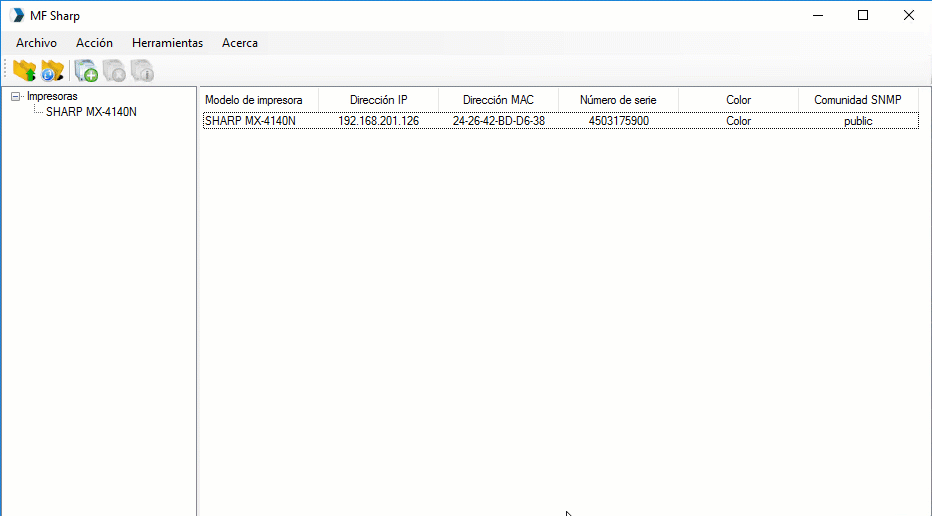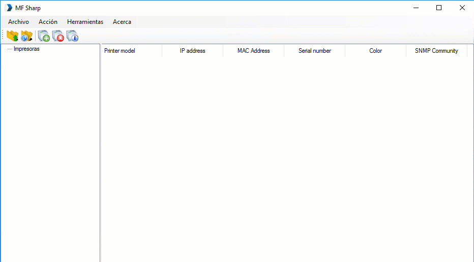 Para eliminar impresoras > seleccione la(s) impresora(s) > menu Acción> opción Eliminar