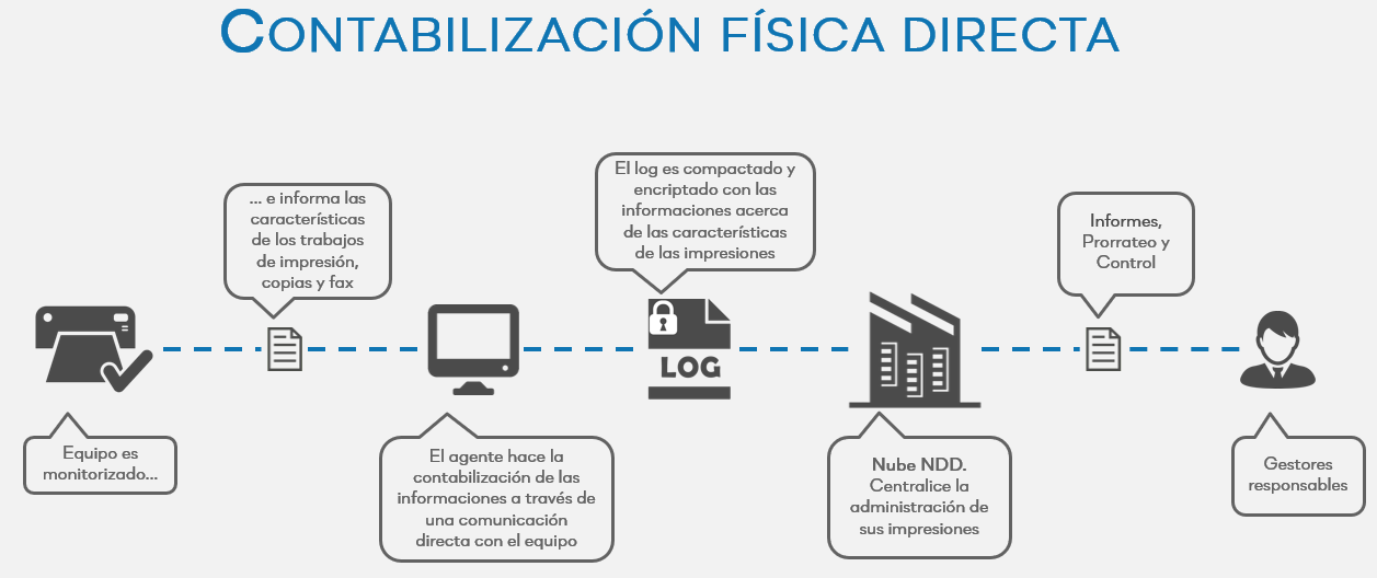 El accounting de la impresión, copia, fax y digitalización tiene el objetivo de gestionar los gastos con trabajos de impresión de la organización. El accounting es la base para generar diversos informes importantes, como prorrateo por centros de coste, la producción de cada impresoras e informaciones de cómo cada usuario está utilizando el equipo. Así, la empresa sabe cuáles son los equipos más utilizados, por quién son usados, y si los funcionarios aprovechan la impresora de forma adecuada.