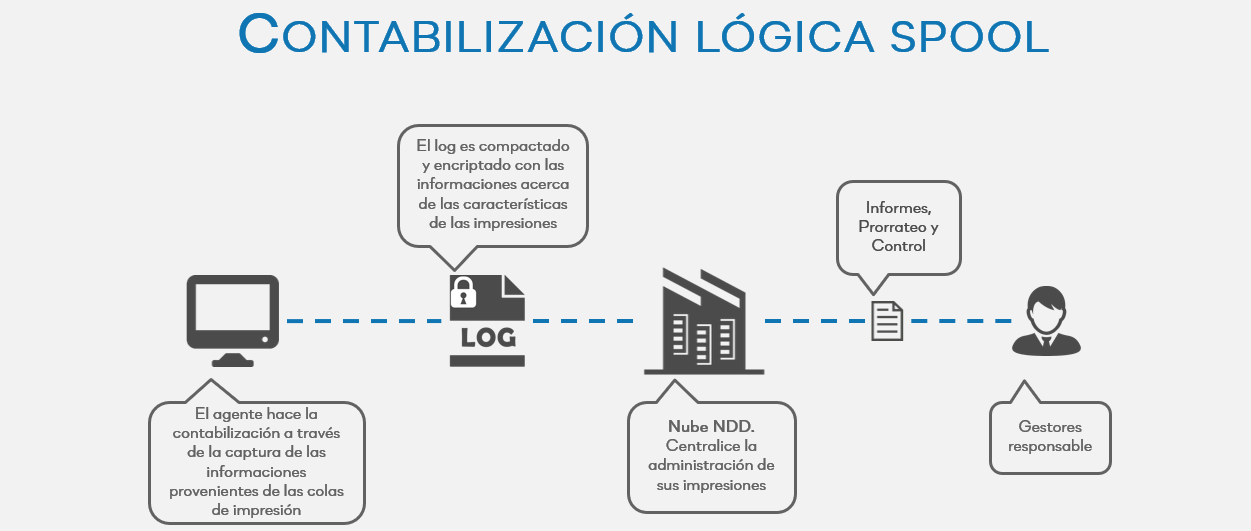 Contabilización a través de la captura de las informaciones provenientes de las colas de impresión.