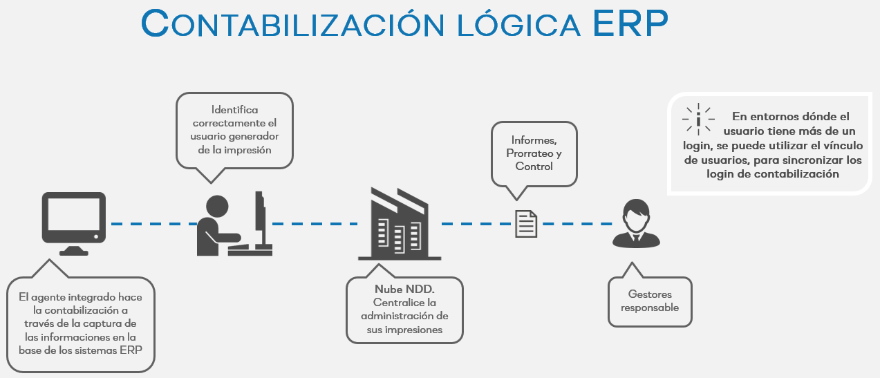 Contabilización de impresiones provenientes de sistemas ERPs, identificando correctamente el usuario generador de la impresión.