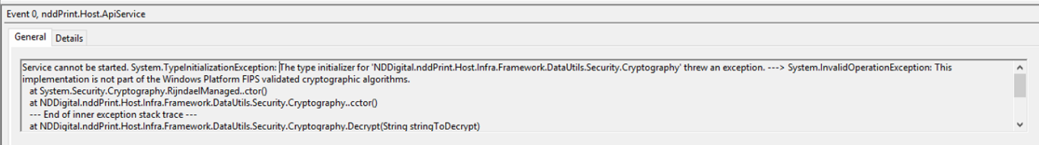 Falla al iniciar el servicio nddPrint.Host.ApiService