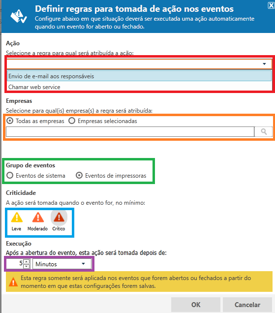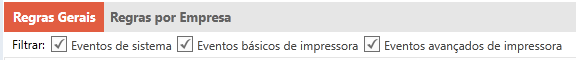 Defina em quais eventos a ação será aplicada. Para configurar para os dois grupos de eventos (sistema e impressoras), é necessário criar duas regras;