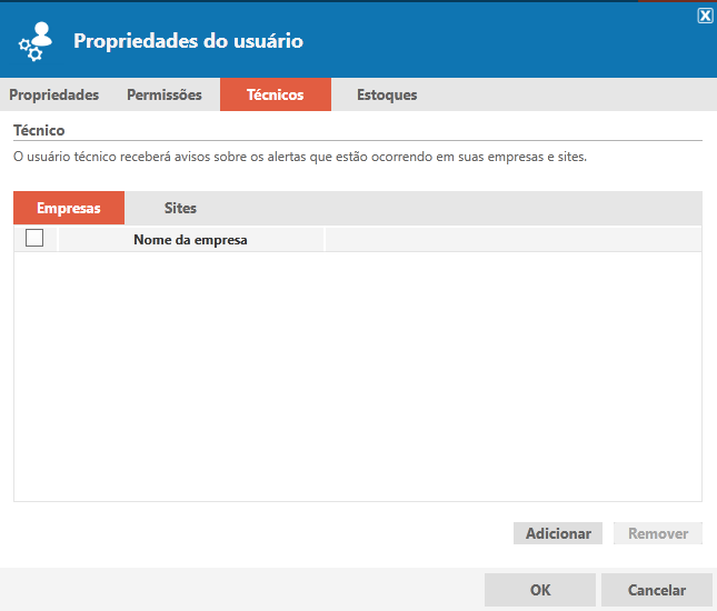 Os usuários que receberão os e-mails de alertas do sistema, deverão ser “técnicos” ou “técnicos externos” das respectivas empresas/sites:
