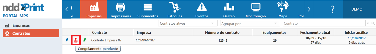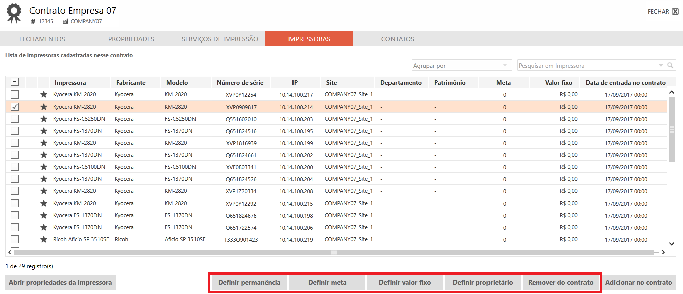 Remover do contrato: Permite remover a(s) impressora(s) do contrato.