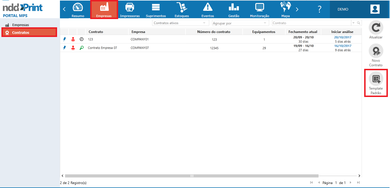 O template padrão está disponível na aba de Empresas > Contratos: