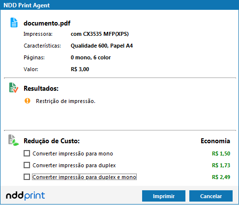 A redução de custos trata-se da conversão de impressões coloridas para monocromáticas, e de impressões simplex para duplex. Essa conversão poderá se dar de duas formas: