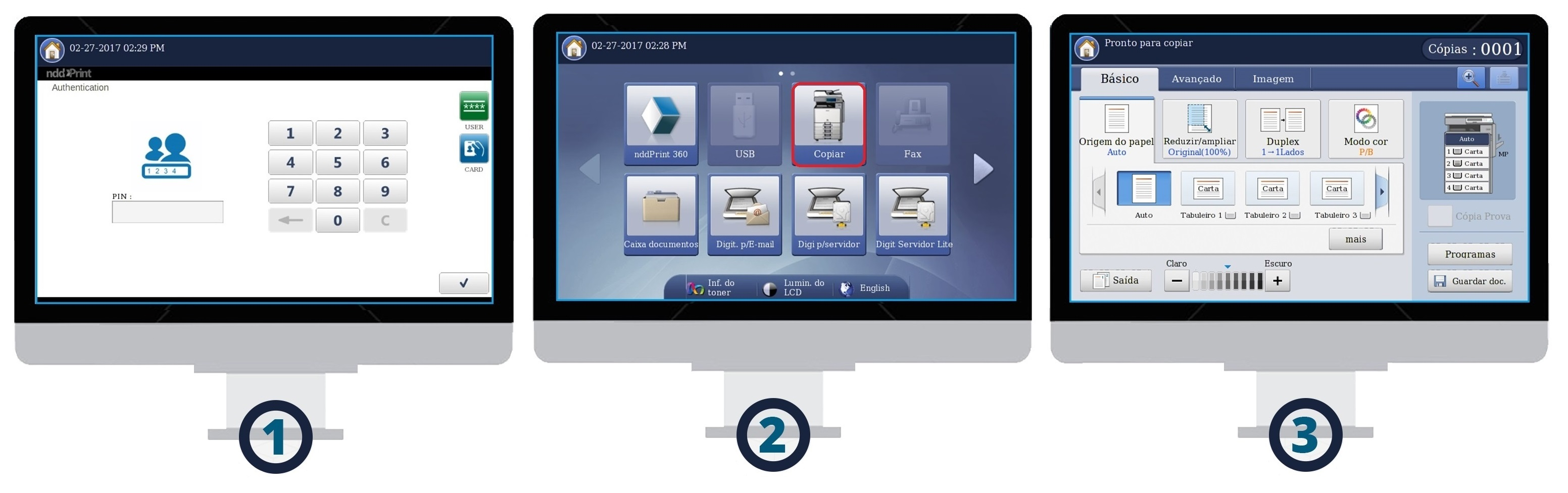 Ao instalar as aplicações NDD Print Client Samsung, o método de autenticação da solução é definida, por padrão, como Autenticação por Dispositivo. Desta forma, a autenticação NDD Print se sobrepõe á interface da impressora, fazendo com que usuário deva autenticar com suas credenciais antes de executar qualquer função nativa do equipamento, como cópia, fax ou scan, e também para realizar impressões de seus documentos através do Releaser.