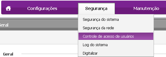 No ícone Rede/Segurança/Manutenção, clique em Segurança
