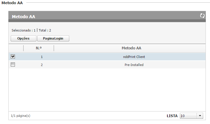 Em Método de autenticação selecione a aplicação NDD Print Client, clique em Opções