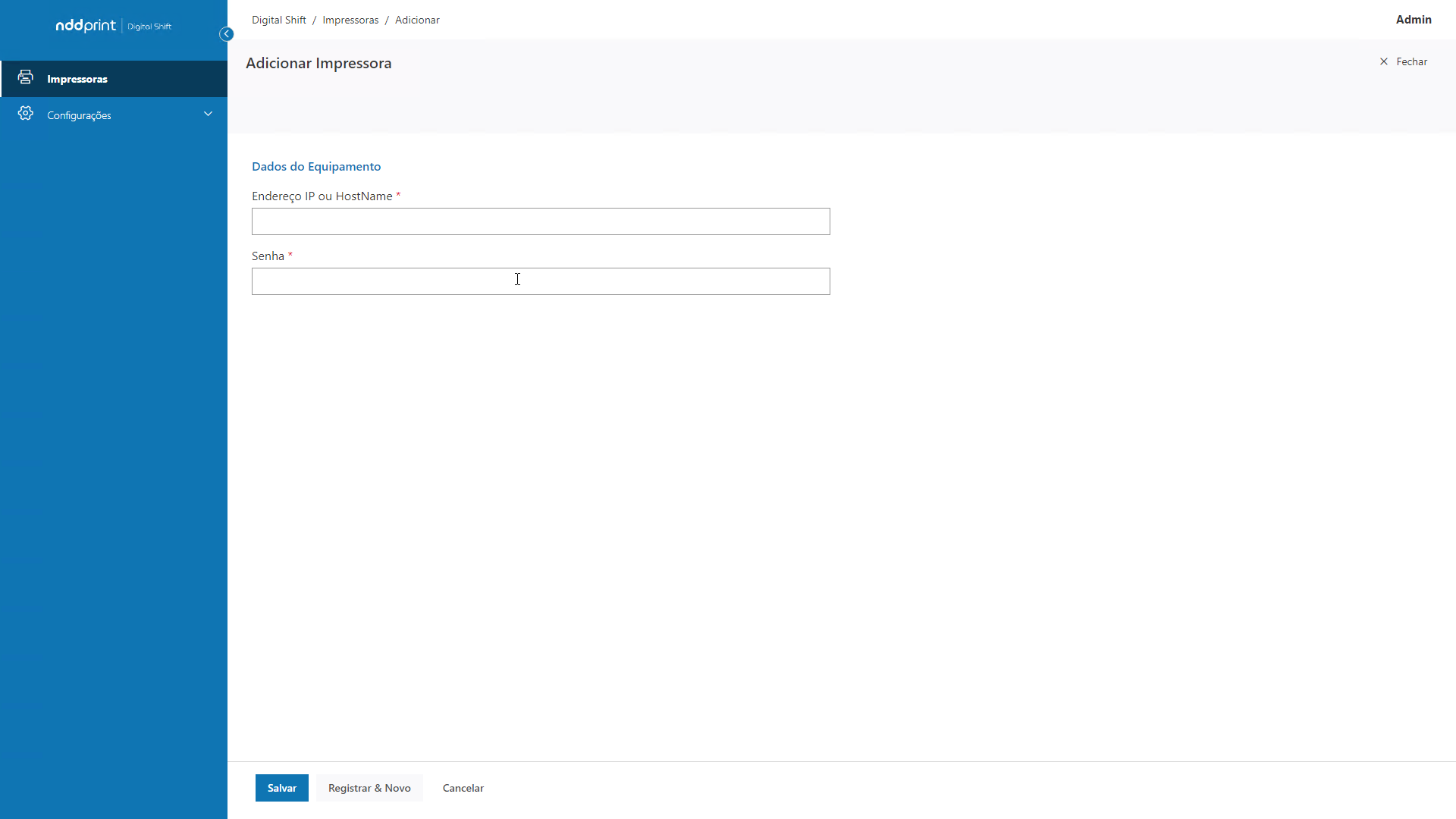 Senha: informe a senha de administrador da impressora a ser adicionada.