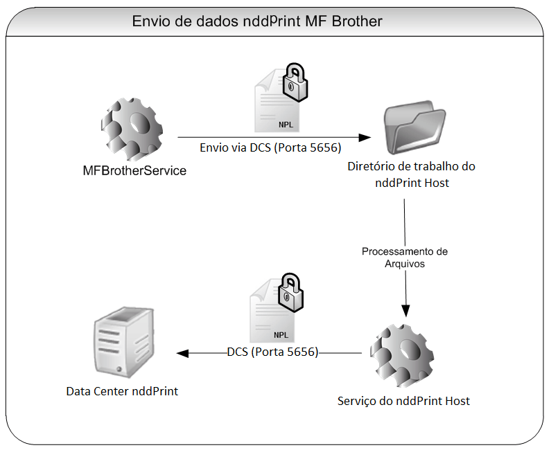 O NPL é então enviado ao NDD Print Host, o qual processa os arquivos e os envia ao Data Center NDD Print: