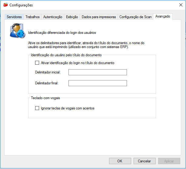 Na interface de administração, é possível configurar para que as teclas com vogais acentuadas sejam ignoradas. Para habilitar esta funcionalidade, acesse o menu Ferramentas > Configurações.