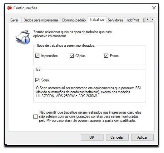 Para configurar os tipos de trabalhos a serem contabilizados pelo produto, acesse o menu ferramentas > configurações.