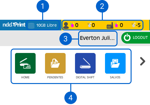 Aqui você poderá visualizar o nome de usuário autenticado no NDD Print Client.