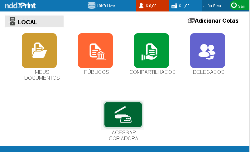 Ao selecionar um servidor remoto, o NDD Print Client irá utilizar as configurações do servidor NDD Print Releaser selecionado, ou seja cotas por espaço e o que estiver ativo, como documentos públicos, compartilhados e permissões.