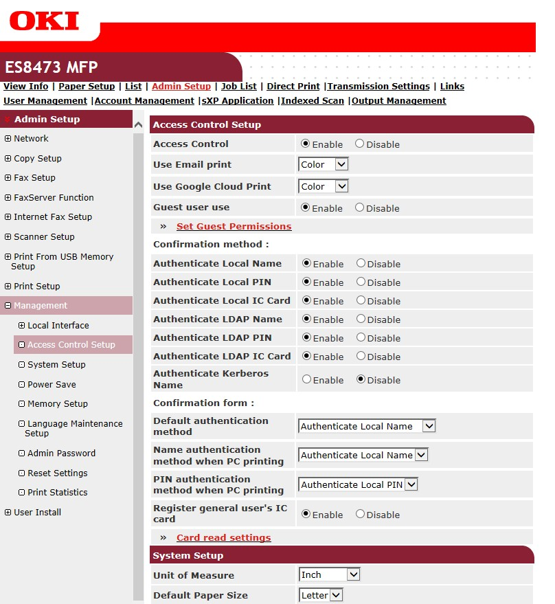 Para que tanto a autenticação nativa quanto a nddPrint funcionem corretamente nas impressoras sXP2, é necessário habilitar o Access Control.