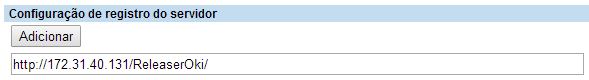 Em seguida, o endereço do servidor nddPrint Releaser deverá ser configurado no sub menu Configuração de registro do servidor. (Clicar em Adicionar).
