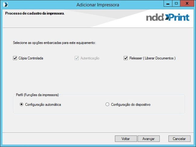Configurar automaticamente a autenticação e liberação segura nddPrint.
