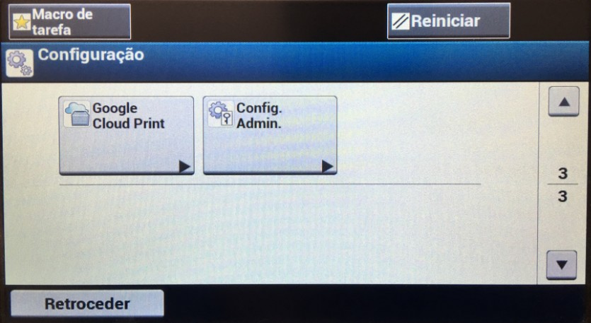 Após autenticar no painel da impressora como administrador, clique em "Config. Dispositivo"