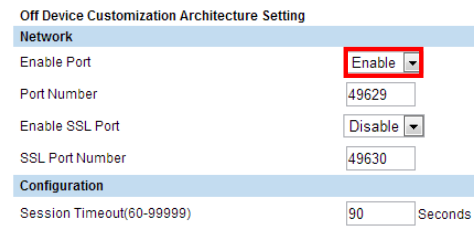 Habilite a opção Enable Port e configure a Port Number do protocolo ODCA. Por padrão virá configurada a porta 49629.